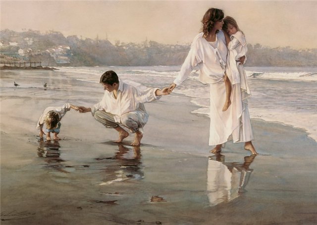 Personal Life: Married to Laura, with whom he had three daughters. His marriage to Laura and the arrival of three children provided new inspiration for the artist. His family often appeared in his work, and he sought to capture intimate moments of their lives. Many lovingly rendered domestic scenes were added to the portfolio during those years. His work focused on capturing intimate moments he called “moments of introspective solitude.”